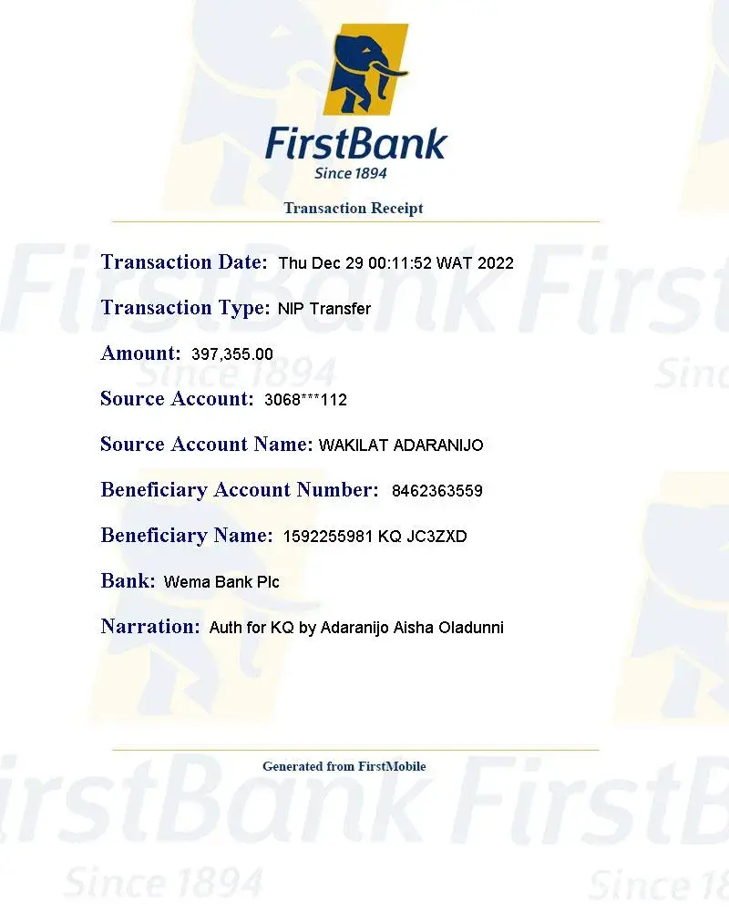 I bought a Return ticket for my daughter (Aisha Oladunni Adaranijo) on 29th Dec 2022, for Lagos-Kigali trip via Kenya Airways. I cancelled the flight on 5th January 2023 due to the fact that her passport will be less than six months at the time of travel on 4th Feb 2023. I paid $529 for the ticket through a transfer from my First Bank account (receipt attached) but I am yet to receive my refund of $429 as advised by the Airline (pls see extract of response from Kenya Airways below).