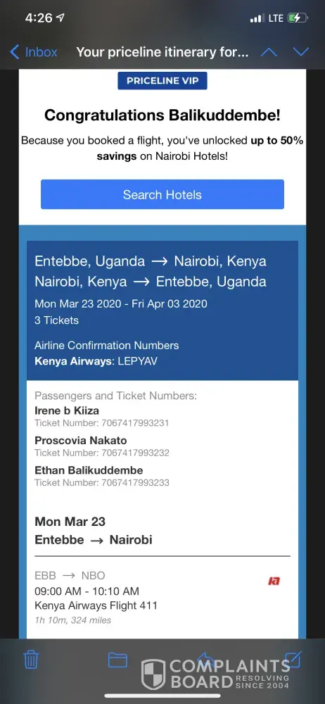 Now my second complaint is regarding a refund on a flight from Entebbe to Mombasa on the 8th October 2020.