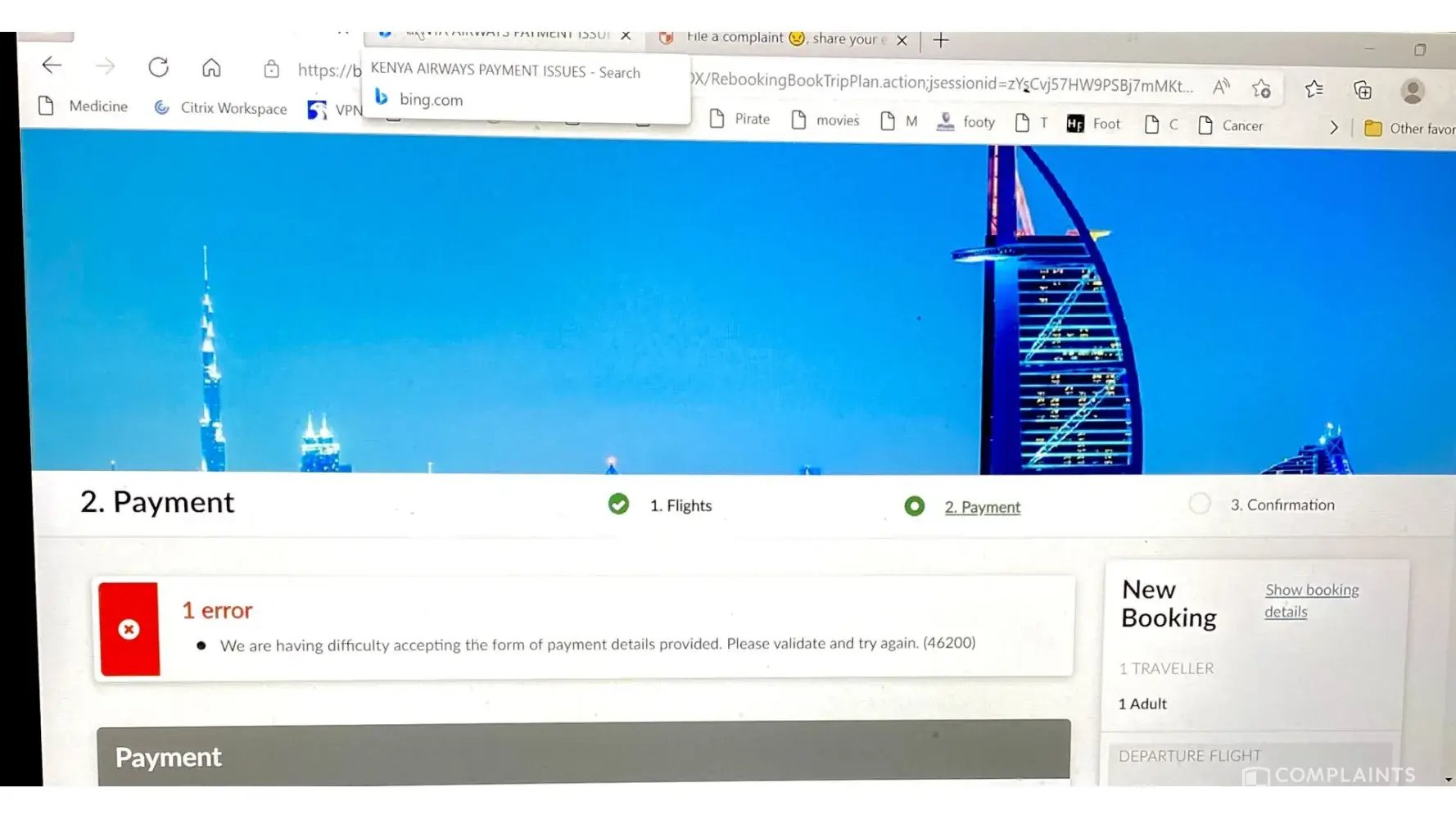 Tried several ways to pay but system generates error above, tried contacting KQ via whatsapp but no response, talk to us website assistance doesn't work