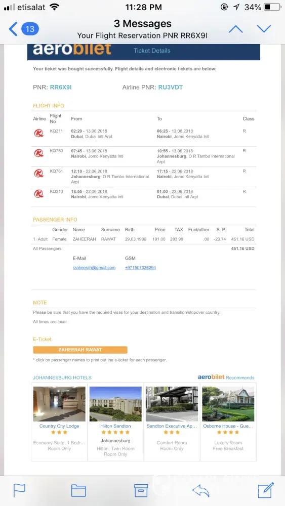 I am very upset I had booked a flight from Dubai to jhb via Kenya airlines and with the result there were many unecessary complications which I had to face which I find unacceptable.