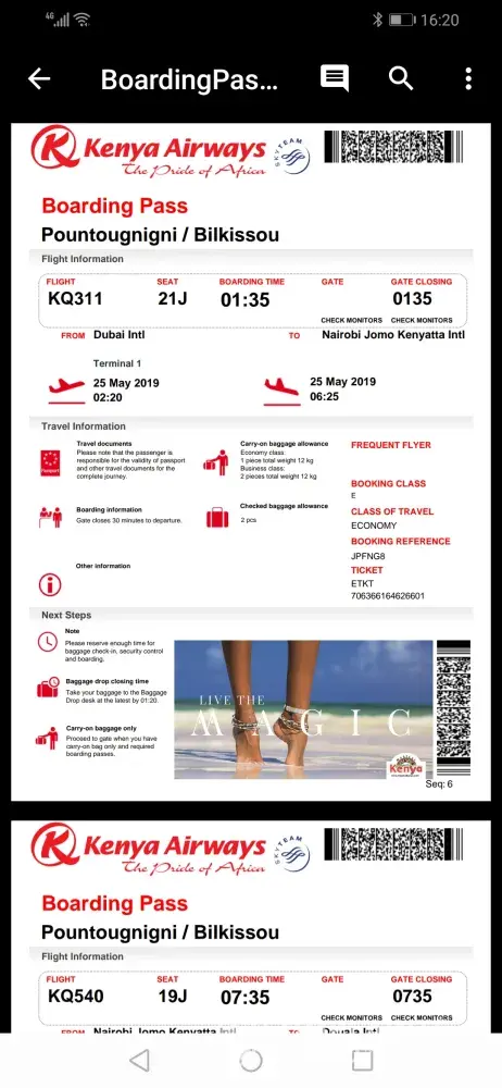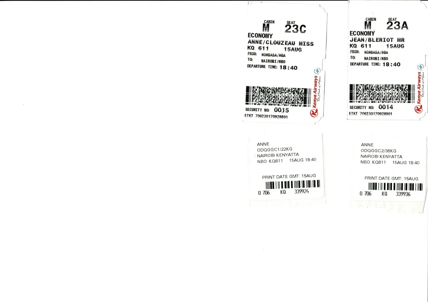 1. Boarding passes flight KQ 128 and KQ442
