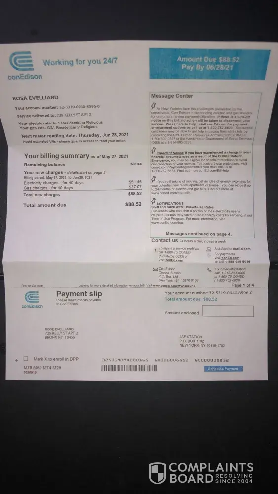 Verified customer This complaint was posted by a verified customer. Learn more