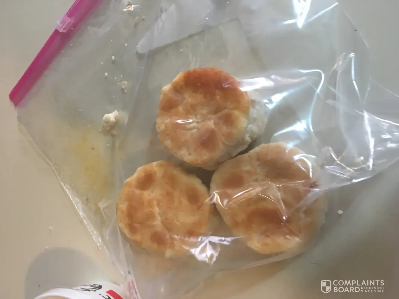 Make a long story short. Bought three fill up boxes two days ago.. One of the Biscuits had mold green mold and was hard as a rock. Second meal breast was red inside uncooked.. Returned both .. The Manager Angel was ruined.. Told me sometimes the Biscuits it contaminated. From the paper on top.. As if no big deal.. No apology. I do not live close bye.. I do not appreciate the attitude. As if I did something wrong.. He said he was going to contact corporate. But he did not take my information..I have my pictures..