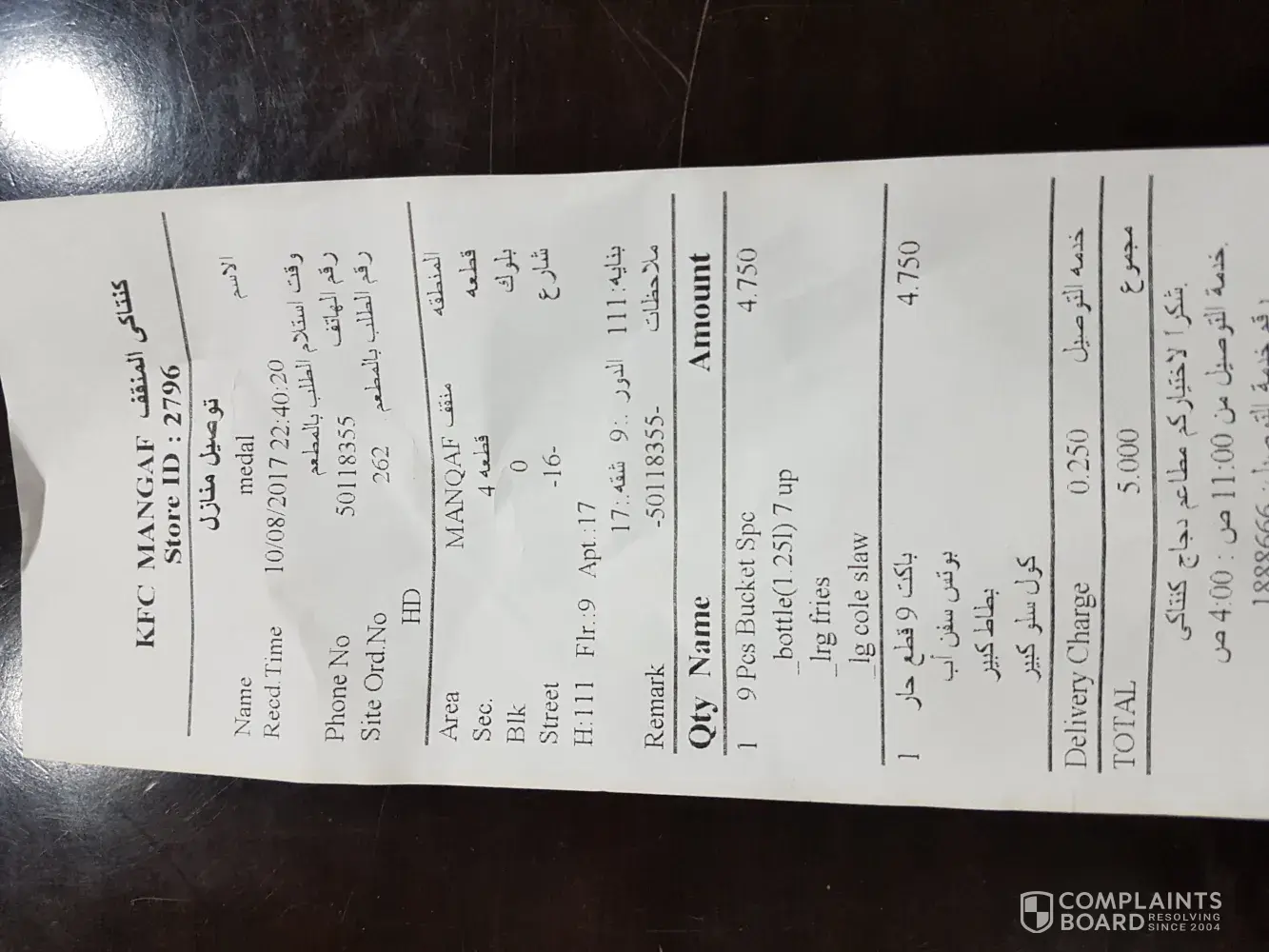 On August 8th at 2:19 p.m. my husband went to KFC to purchase me a big box coleslaw, wedge, biscuit and medium Pepsi. he brought it back to me and my potato wedges were stale I asked him to take it back to the store and get my meal replaced.