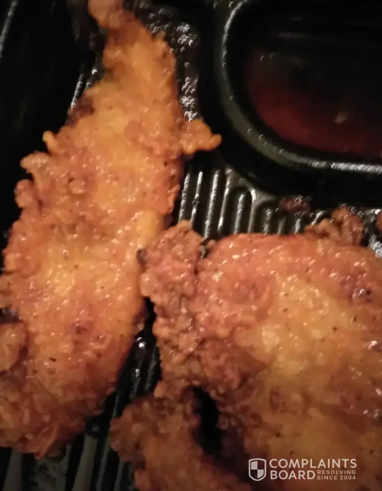 I stopped by the KFC in Duncanville TX on my way home from work to buy the Nashville tenders with wedges and got burned tenders on one side and Cole slaw I purchased a drink and it was watered down with no taste