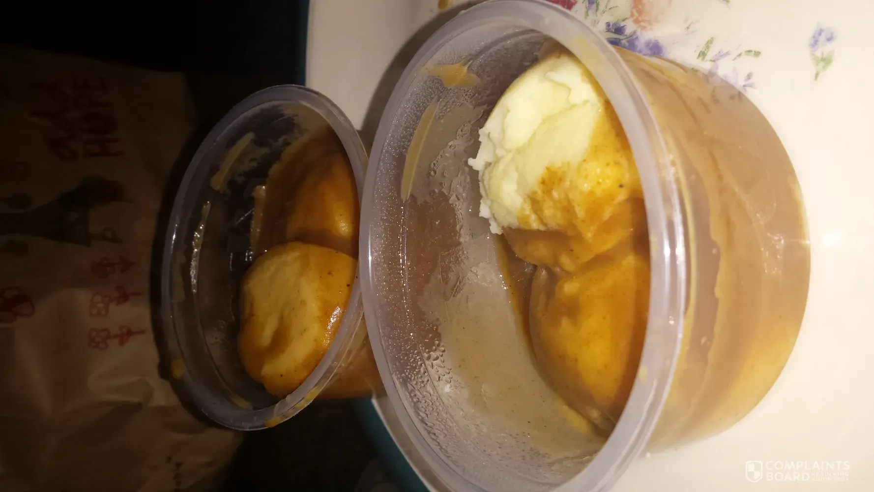 On the 3rd January 2016, I purchased a one piece mash and gravy from this store's drive thru. I placed it on the front passenger seat, heading back home. When I reached home, I lifted the bag to take it out and surprisingly the bag tore underneath and all the hot mash and gravy fell on my bakkie seat and on my console were my sell phone was. I then proceeded to the store to complain about this, because this happened the 2nd time in 1 week. When I reached the store, I spoke to the manager named Kevin and he came to my bakkie and had a look at the mess it was in. He then asked a staff to clean up the vehicle, I also told him that my cell phone also got messed up and if it is damaged then I am going to hold them responsible. After the staff cleaned the mess, she didn't do a good job either.