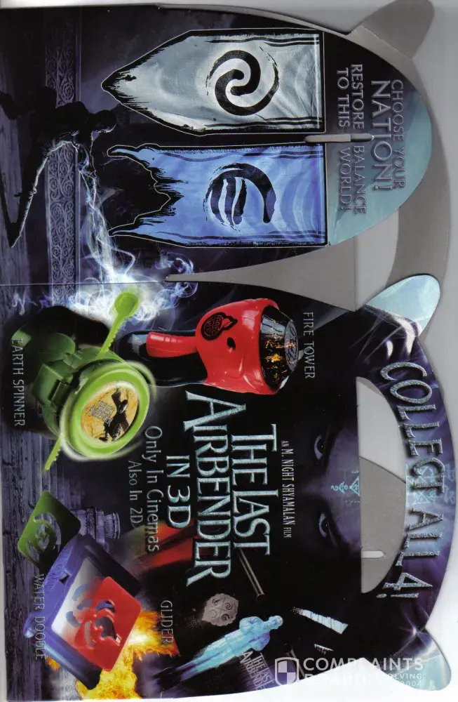 I received the happy box with logo collect all 4! Of the last airbender in 3d with ben ten alien force coming up next on the flip side of the box and our meals then went home, only to discover once I got home placing the meals on the counter I took the toy out and it was not even the toy according to the promotion advertised on the happy box.