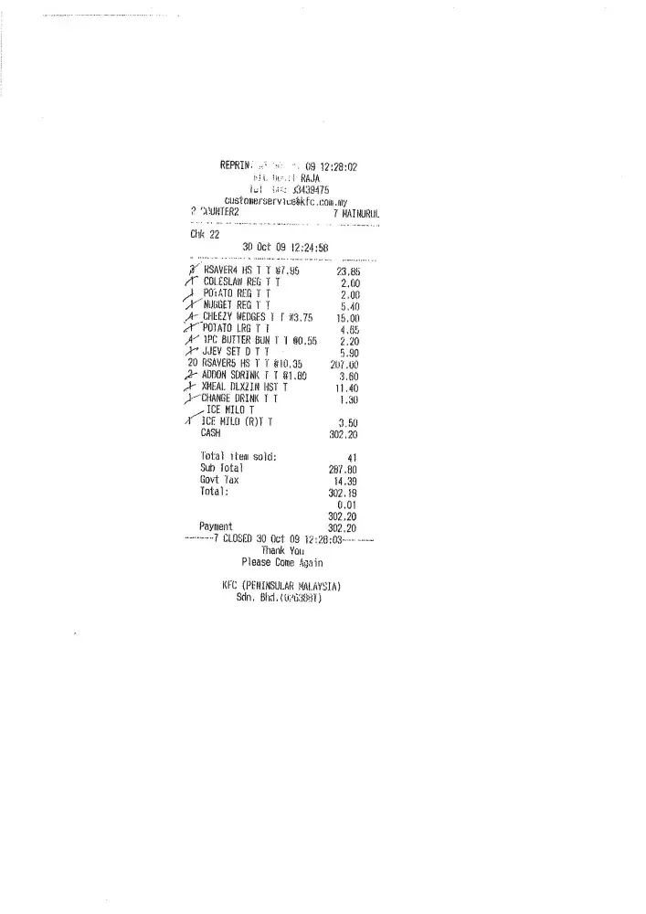 would ever dine at your outlets and the very thought of eating at KFC now makes me want to purge. I have the receipt of our order as well. We don't know if