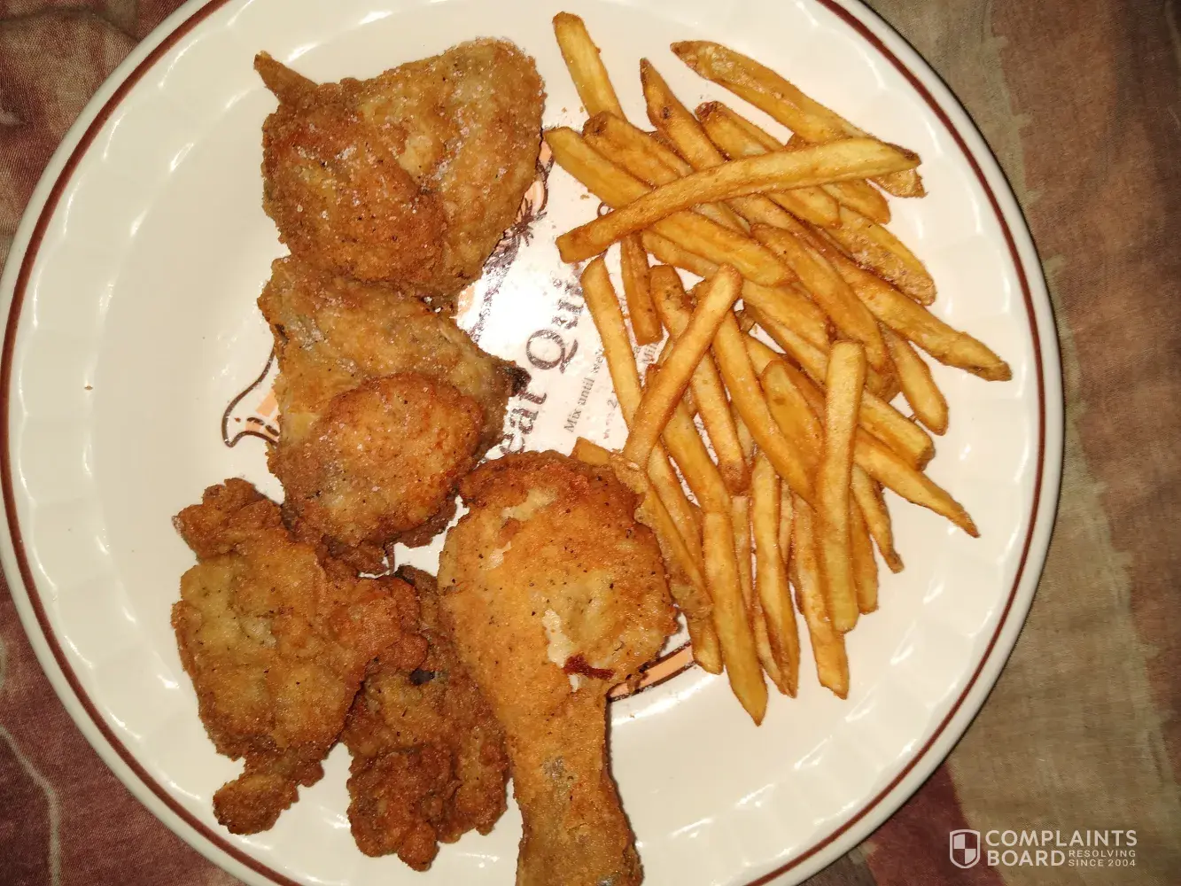 I am 53. I have been a patron for as long as I remember. I have watched the sizes of chicken and other products diminish and the quality of your ingredients go down while your prices have increased. Still, I have stayed a loyal customer until now. I can not tell you how disappointed I am. I didn't ask for a refund or anything else. I just wanted an apology or even an acknowledgement of my complaint. I got neither.