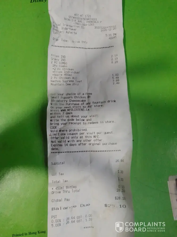 Read full complaint21 pieces chicken bucket I purchased earlier on today