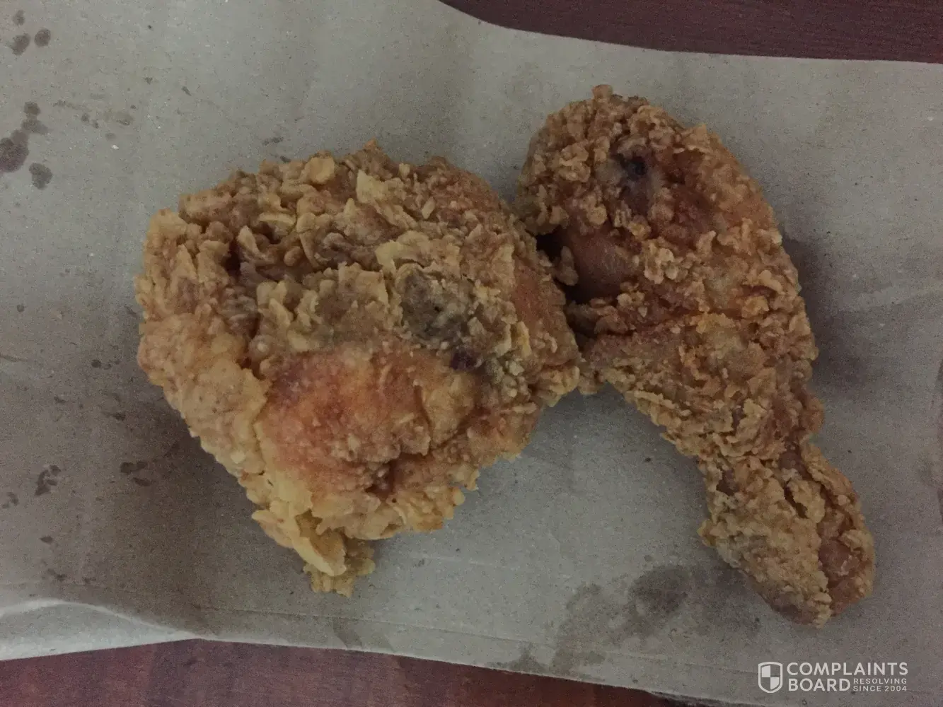 Kfc #1587. Inside purchase ordered 2- 4 piece combos for $15. Took it home and when I opened it I had 2 1p/crunch org. I'm sure I had someone else order because the receipt states the crunch order. So I likely was not the only dissatisfied customer. I tried doing this last week but I couldn't access site. I'm was not a happy customer by any means. Please inform your staff to check orders more closely. Thanks joanne.