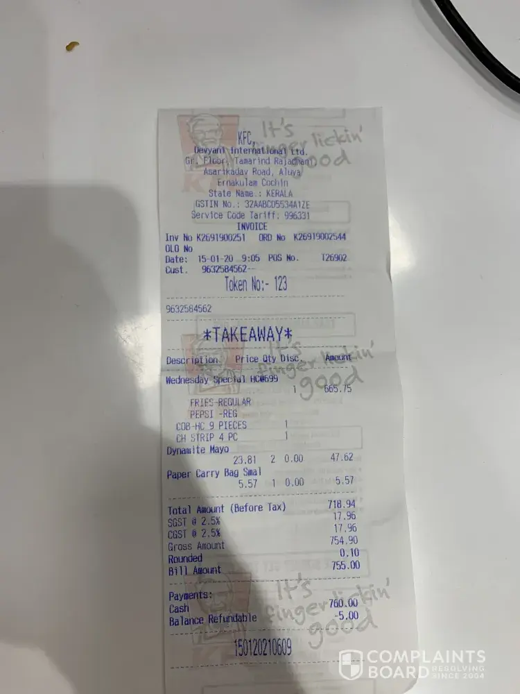I am highly disappointed and regret going to KFC to buy food.