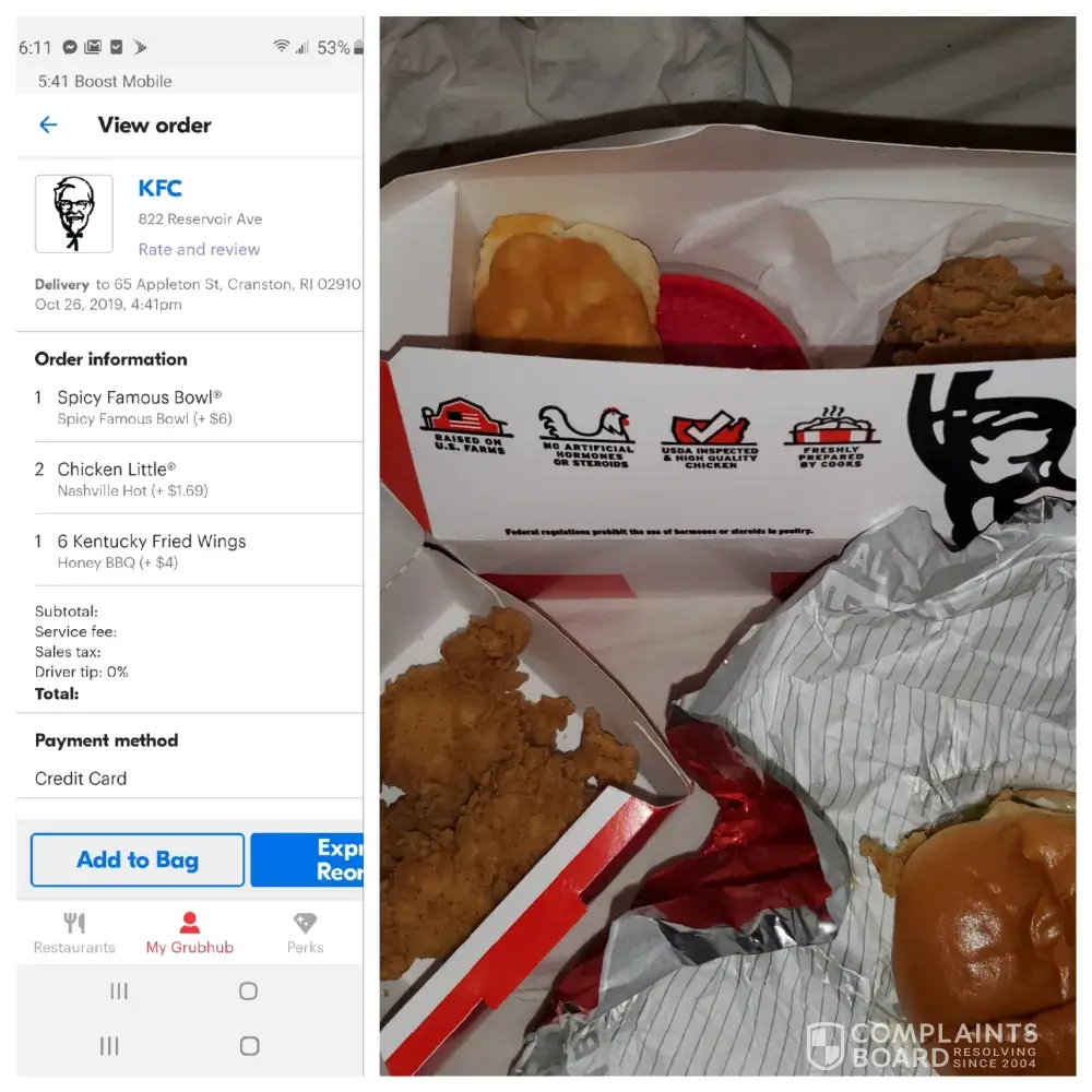 Yesterday I had filed a complaint regarding the wrong food being delivered. My fiance had placed a order while I was at the store when I got back I had made it in time for the delivery driver. Once upstairs opened the bag and seen that the order was wrong. Now the restaurant or the delivery app wants to take blame for the screw up. I want my money back. I added a picture proving that I was given wrong order.