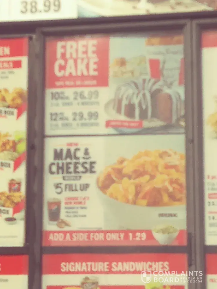Since that i to short, when you advertise at a price it should be sold at that price other wise it is false advertising would you not think . And it would be bad if word got out about this . like maybe you are price gouging at this KFC.