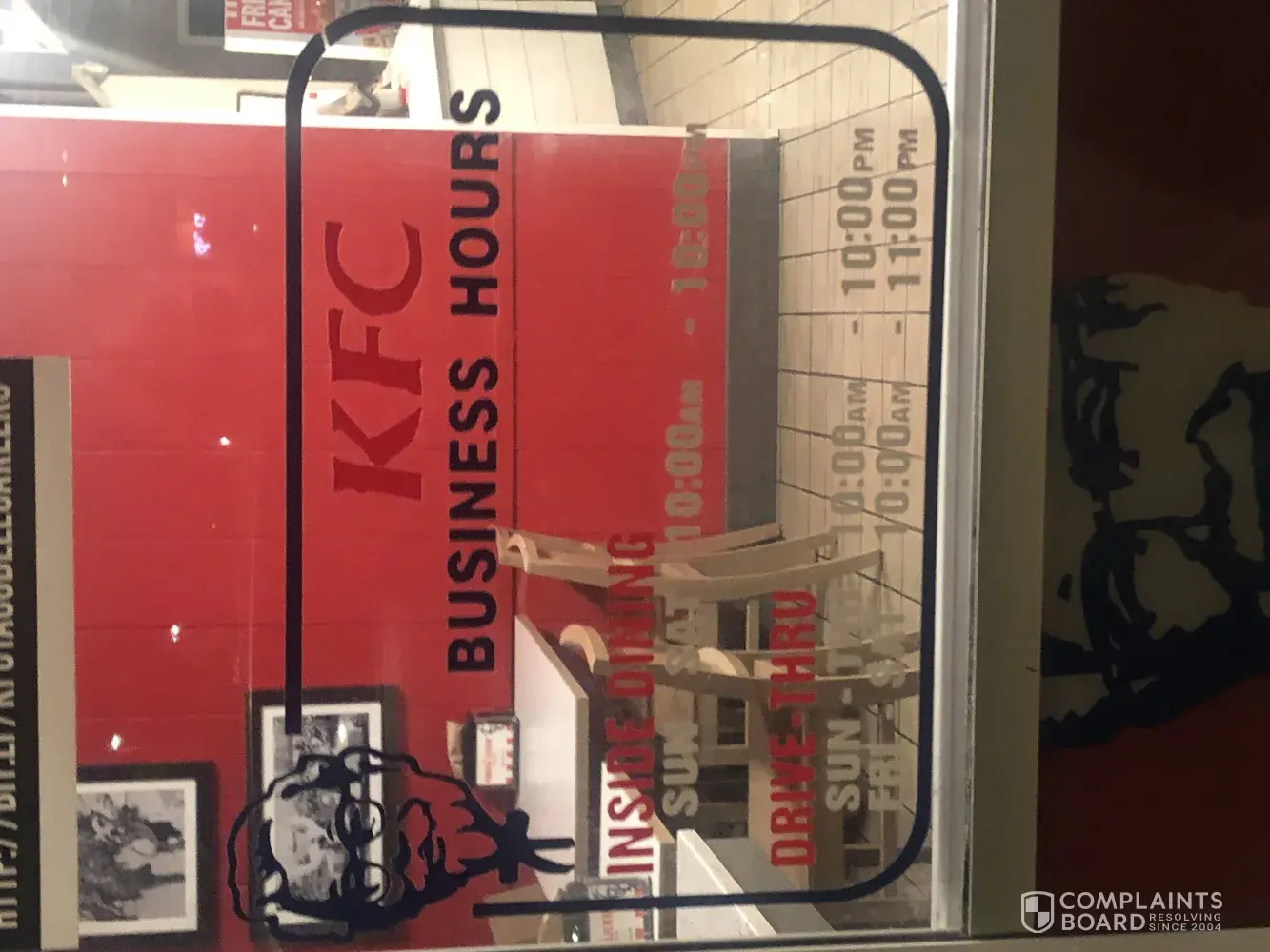 There was another employee sitting in the dining area I suppose on break but he did not offer to help. Other customers who were seated inquired to the cashier sweeping, if he had no other help. They had already wiped there table themselves. Upon entering kfc we came across a piece of chicken on the sidewalk.
