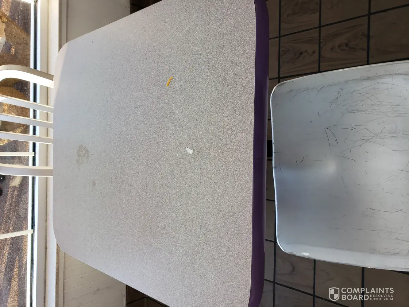 I asked the young man (Cashier) if he would mind having someone to sweep and wipe the tables down. He wiped our table for us and began sweeping til customers came in the door.