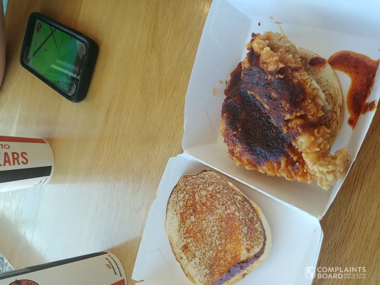 First of I want to say how I love the Nashville hot sandwiches. But at 301 E Lake St, Mt Shasta, CA 96067, two time now I have gotten the Nashville hot sandwich combo and the quality control has been a real let down. It's been inedible photos attached I hope you do something about this I would hate to boycott kfc over just not getting decent food. Thank you for your effort and commitment to delivering delishish food.