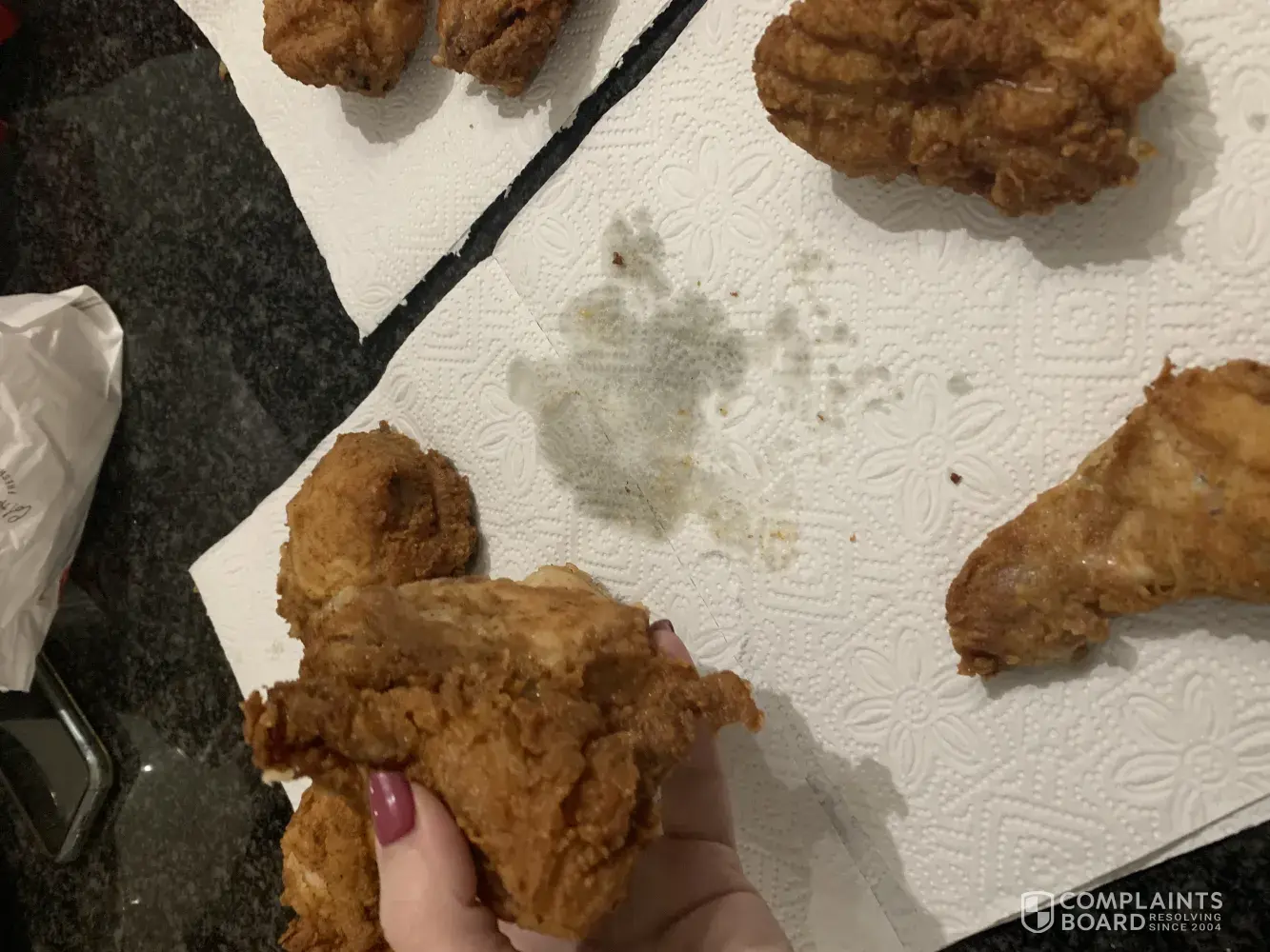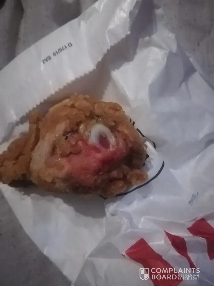 Please refer to case number KFC Customer Care Case CAS-395761-K9C8Y5 I logged last year October. Today I purchased a 15 piece bucket and 10 zinger wings which was 1 piece of chicken short which I did not mind after I stood 10 minutes at a till because due a system error. Now at my last piece of zinger at a family lunch my zinger had blood on which was dis [censored]ing gusting like really which was the last straw I had I had with KFC VANGATE MALL. I called the store and spoke to a very nice lady Zola who understood my situation very well, but like I understand she has to work like everyone else does following orders.