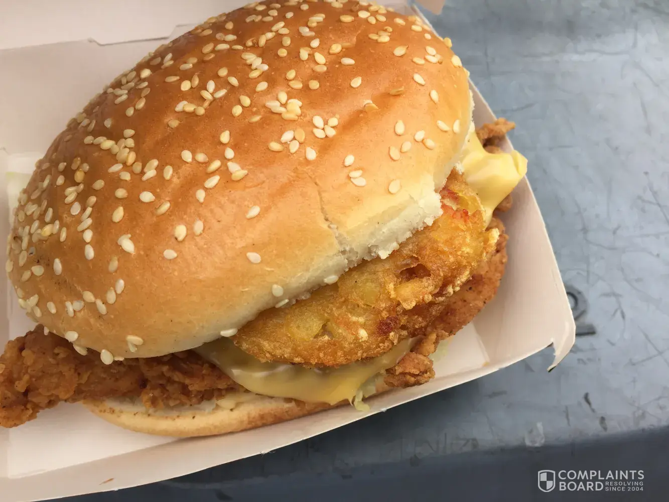 When I arrived home I find that the chicken fillet meal I ordered was a tower Berger meal which contained cheese.