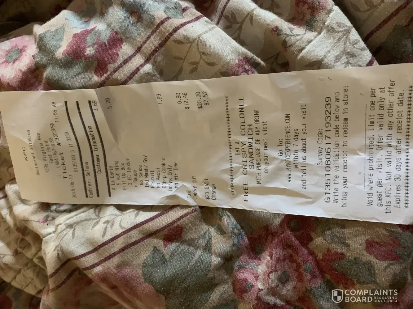 Read full complaintkentucky fried chicken in stephens city va