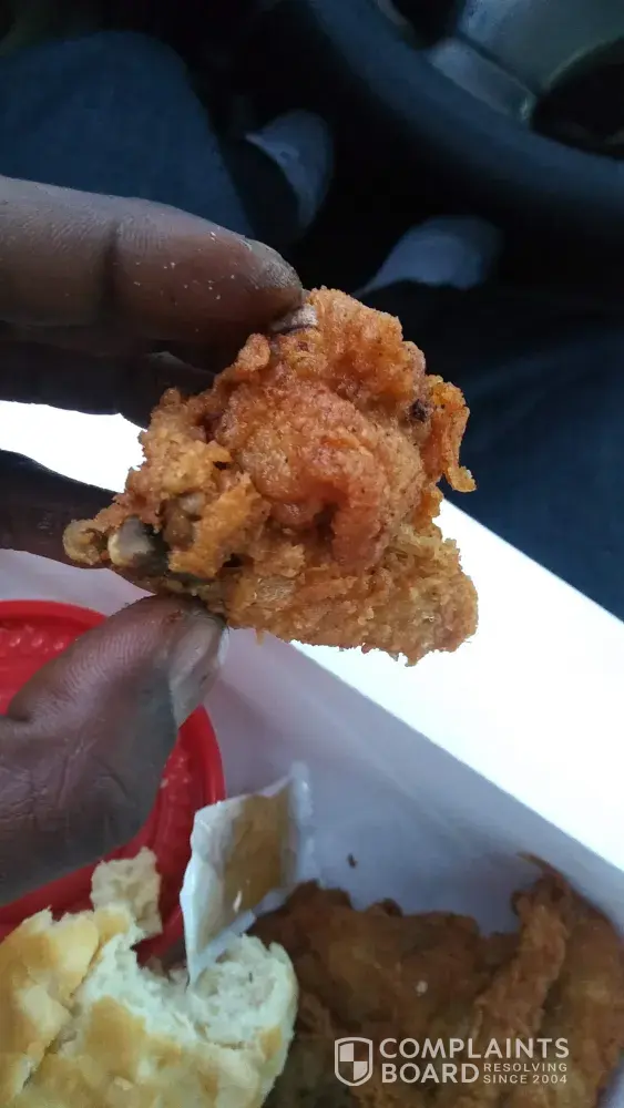 Read full complaintchicken is real greasy taste like old grease don't have the kentucky fried chicken taste to it