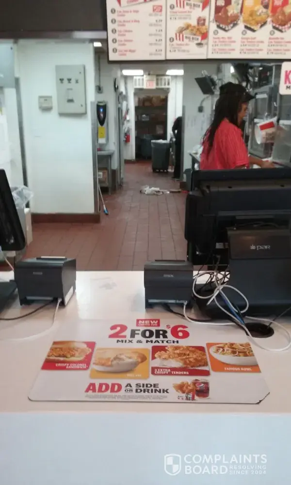 We live in Big Stone Gap, Va. My room mate works at the local KFC and is CONSTANTLY treated like garbage by her manager. Today we went there to get some food. When we ordered, we had to write down our order on receipt paper (which we didn't mind doing) and the cashier punched it in on the drive thru register. We ordered and my friend was denied her employee discount because our order included a 2 for $6 which according to her manager isn't allowed to use the employee discount on which I know is a lie because my friend has had an employee discount on a 2 for $6 before. When we got home we noticed that we were overcharged and upon further inspection we realized that we were overcharged for a single added side to 2 of our 5 dollar fill ups. They were added at full price instead of a dollar. Then we realized that there was a third individual side that we didn't even order. So that's about $7 in total for just individual sides. The manager was telling the cashier what to punch in over her shoulder. My friend then calls down to KFC and speaks with her manager and she tells my friend that she'll refund her for the third side and give her the difference she paid for the full price on the add on sides. We get to KFC and she only gives my friend her money back for the third side and completely disregards the overcharging for the 2 add ons. This manager has completely had it out for my friend and I'm getting sick of seeing her come home crying every night because her manager treats her like she's subhuman. I'm writing this because she's scared that her manager will fire her if she stands up for herself and no one should ever feel that way. No one goes to work to be bullied. This is ridiculous. This manager has had numerous complaints on her and NOTHING has been done about it. If my friend gets fired soon, I'll know this manager saw this review.