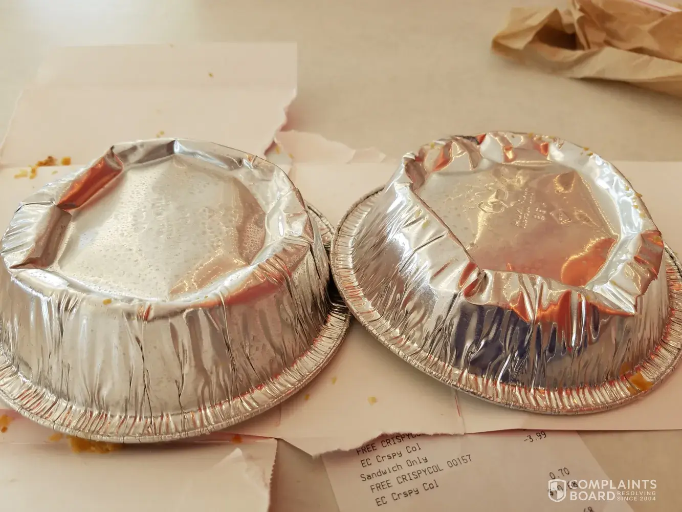 On both occassions my wife and I order chicken pot pies and both times the tin plates are bent in, and we feel like that is to put less filling in the pie.