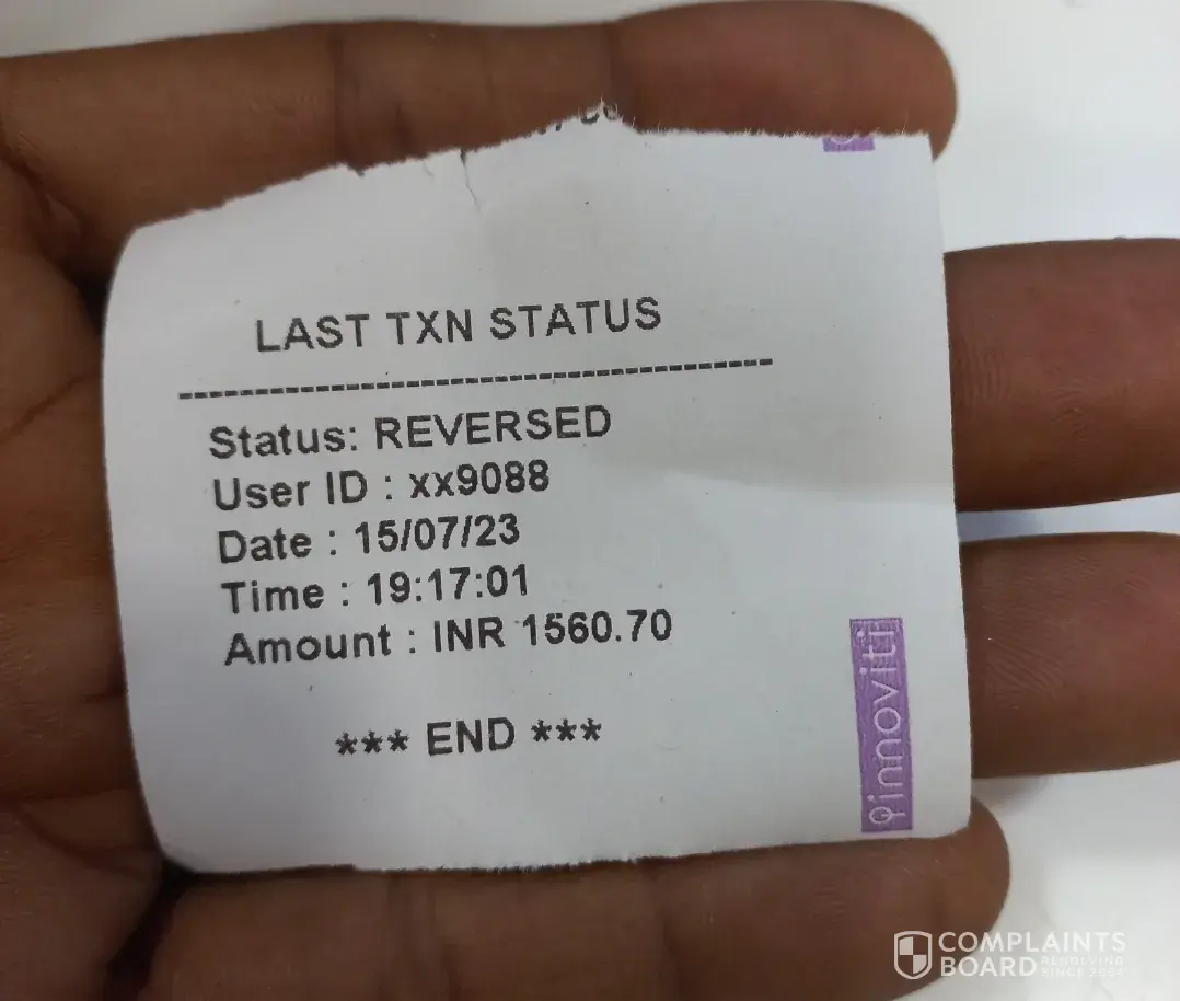 However after completing the transaction it was informed to me by the shop representative that the transaction got declined on the machine and they gave a reversed slip (attached) for the same.