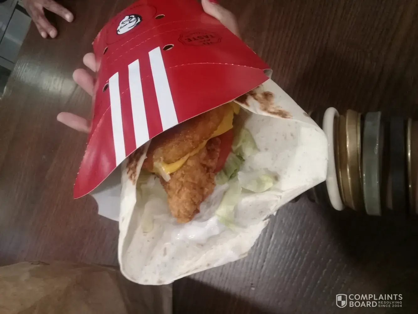 So i bought two box masters at KFC last night and I decided to open my order before I got home. The finger-like tiny chicken nugget was apparently the correct chicken used and the supervisor insisted that everything was done correctly. I waited for them to correct the order but what is more frustrating is that it came back the same. I had no choice but to request a refund. I will never ever set my foot at KFC and I will make sure my family doesn't too. Customer service is very poor and I never thought false advertising existed at KFC. I have never seen a box master with the ingredients so tiny and lined in the middle of the wrap. I could literally wrap everything that was inside with a quarter of the wrap
