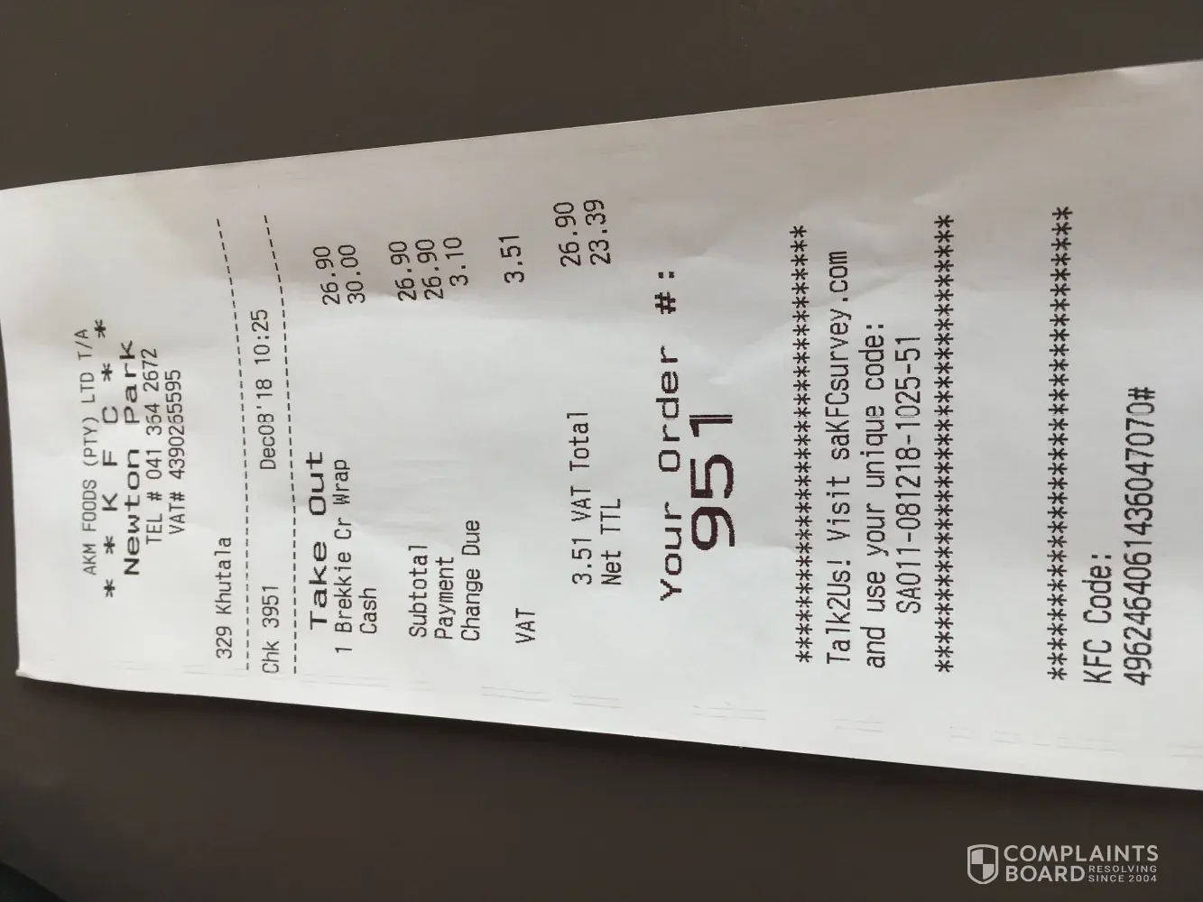 So off we go again, to Brackenfell KFC. Got there, a bin was standing in the drive through. AGAIN, the drive through is out of order.