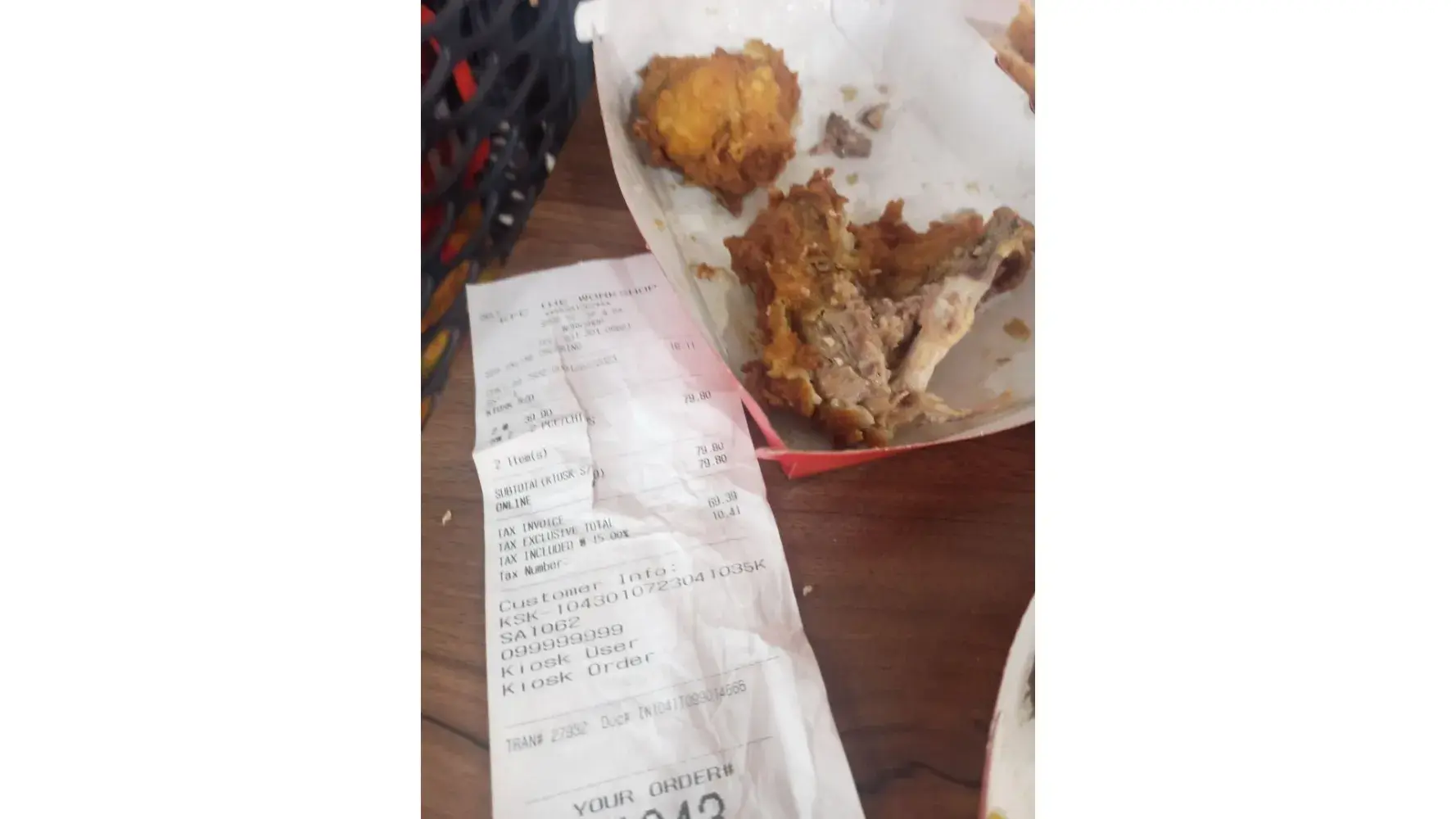 I went to my local KFC and pd 8.00 for a 2 piece meal. My leg was broken and half it’s meat was gone. Wing was so small it was just a ball of bones. There was no meat in my meal and I had to fix food when I got home. That’s my last visit and pic going on Fb.
