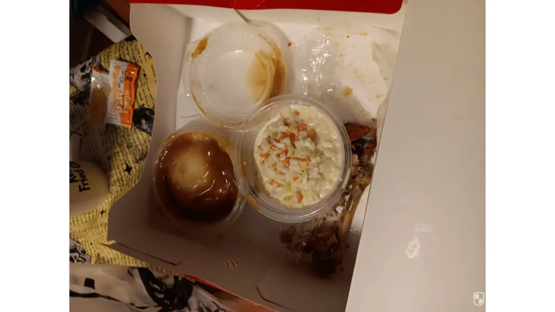wrong order got sick and 14 p meal slaw mash 6 bisc. Was ordered