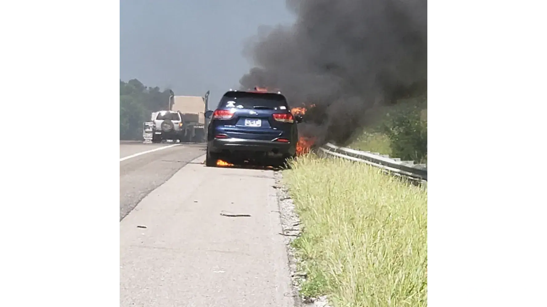 On 6/2/2023 as I was driving on the interstate My Kia Sorento LX it made a slight tapping noise for about 5 miles before the engine completely lost power & brakes, it began to smoke, I was able to get off the main Hwy, the warning track helped slow the vehicle, but when I saw flames & smoke coming into the cabin I had to get out, I was able to use park to get it to stop. Soon as I left the vehicle it became engulfed in flames. There was no warning lights to indicate issues while driving, however it had been taken to the dealership for a oil change, engine light & anti theft recall. They changed the oil, reset the engine light stating it was a CO2 sensor & if it came back on to call, it did not, also the recall was unavailable due to it was causing computer issues. My car had 68K miles & still should be under warranty but since it's not able to be taken in to the dealership I had no choice but file a claim with my insurance, needless to say I'm left being out of a car that should have been under warranty, I filed my 1st complaint 6/5/23 & still not heard from Kia.