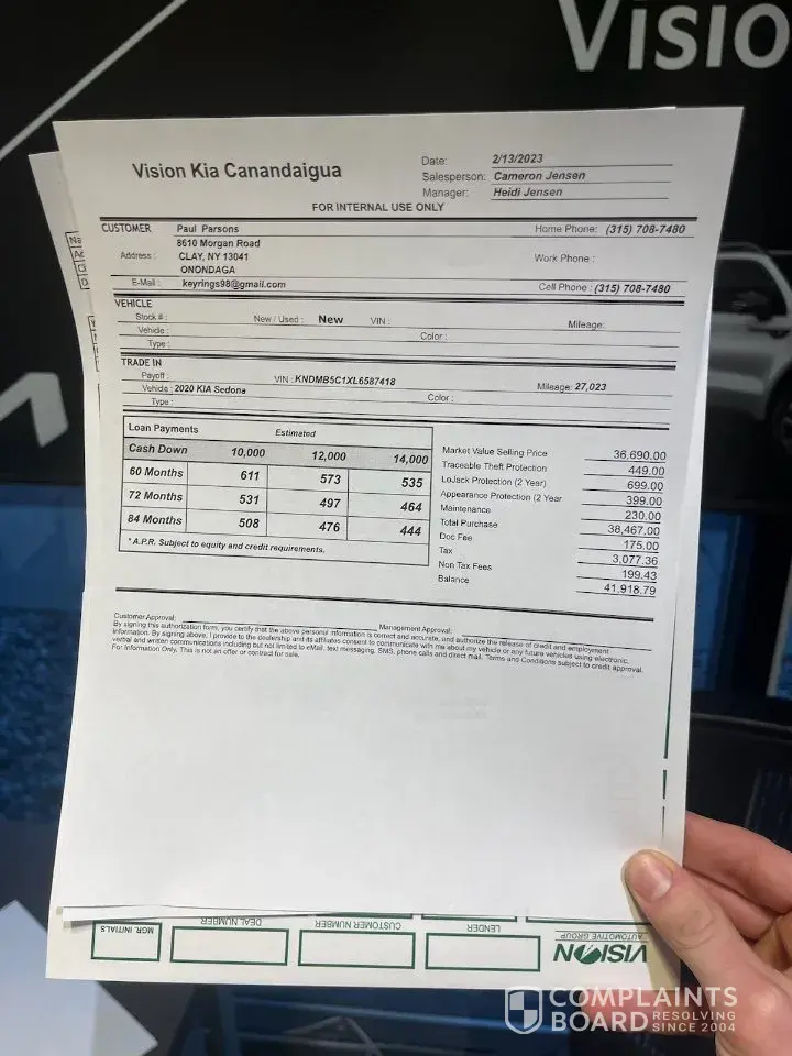 I was trying to purchase a 2023 Carnival from Vision Kia in Canandaigua, New York.