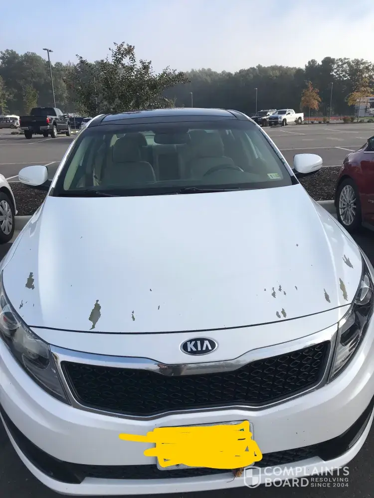 I have taken my car to a Kia dealer every 5, 000 miles to have it's oil changed and when I went in last time I mentioned the paint job to the service manager and he said "it's always the white vehicles we see this on". That right there tells me there is a huge problem. While I was there I saw a white Kia Sorento and another white Optima that was also peeling.