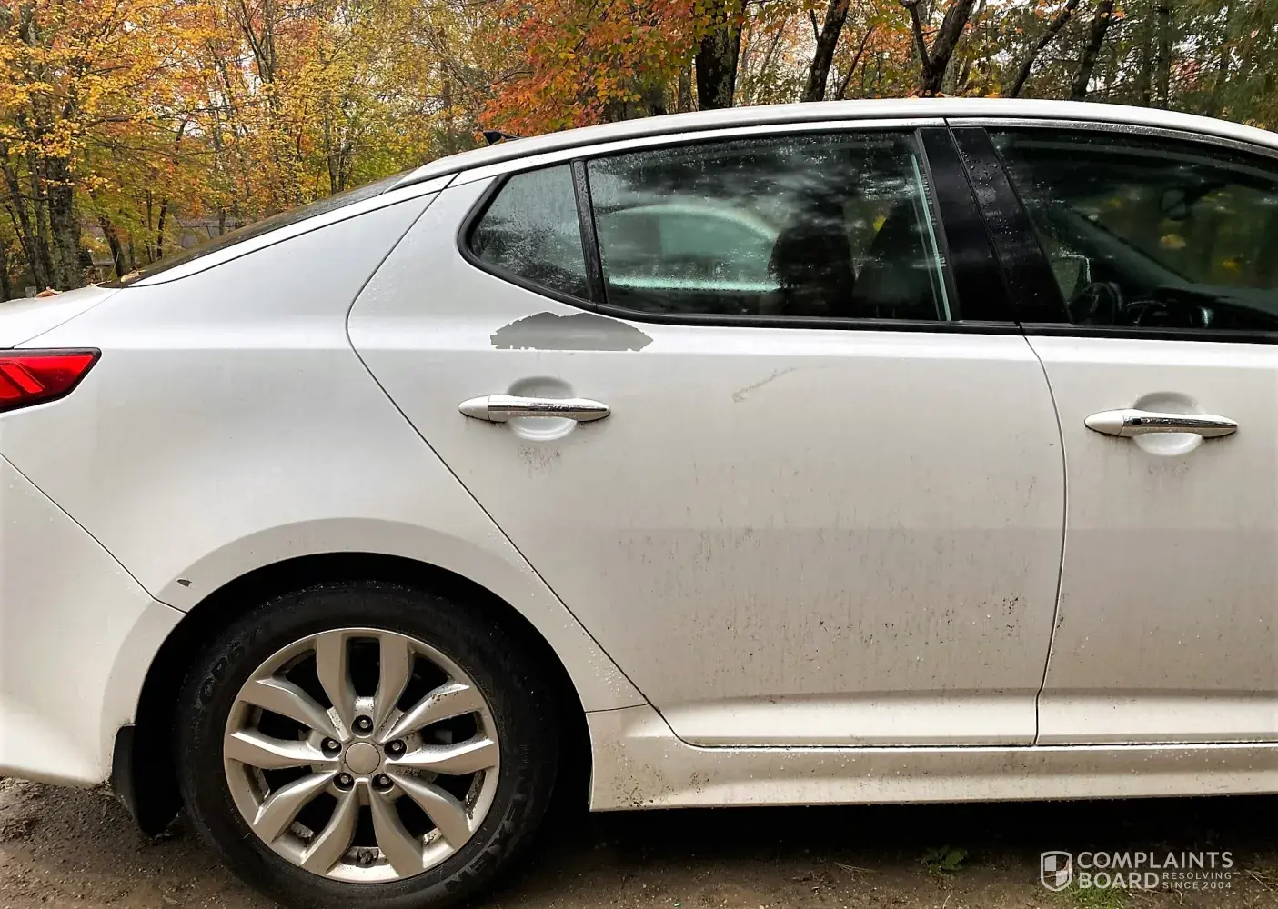 I purchased a 2015 Kia optima back in January 2018. Since then, a spot of paint missing formed on the rear passenger-side door that has expanded to the size of two fists. I brought the vehicle to a local body repair shop recommended by my auto insurance provider to get the work done. Upon starting the work, the shop owner immediately informed me that the paint was "delaminating" and is not adhering to the primer at all. I did some research and found this unfortunately is a common problem on Kia Optimas with the "Snow Pearl White" paint finish. I've contacted the dealership, purchased a vehicle history report and filed a complaint with the NHTSA. The issue is still outstanding. All I want is for Kia to pay for a new paint job.