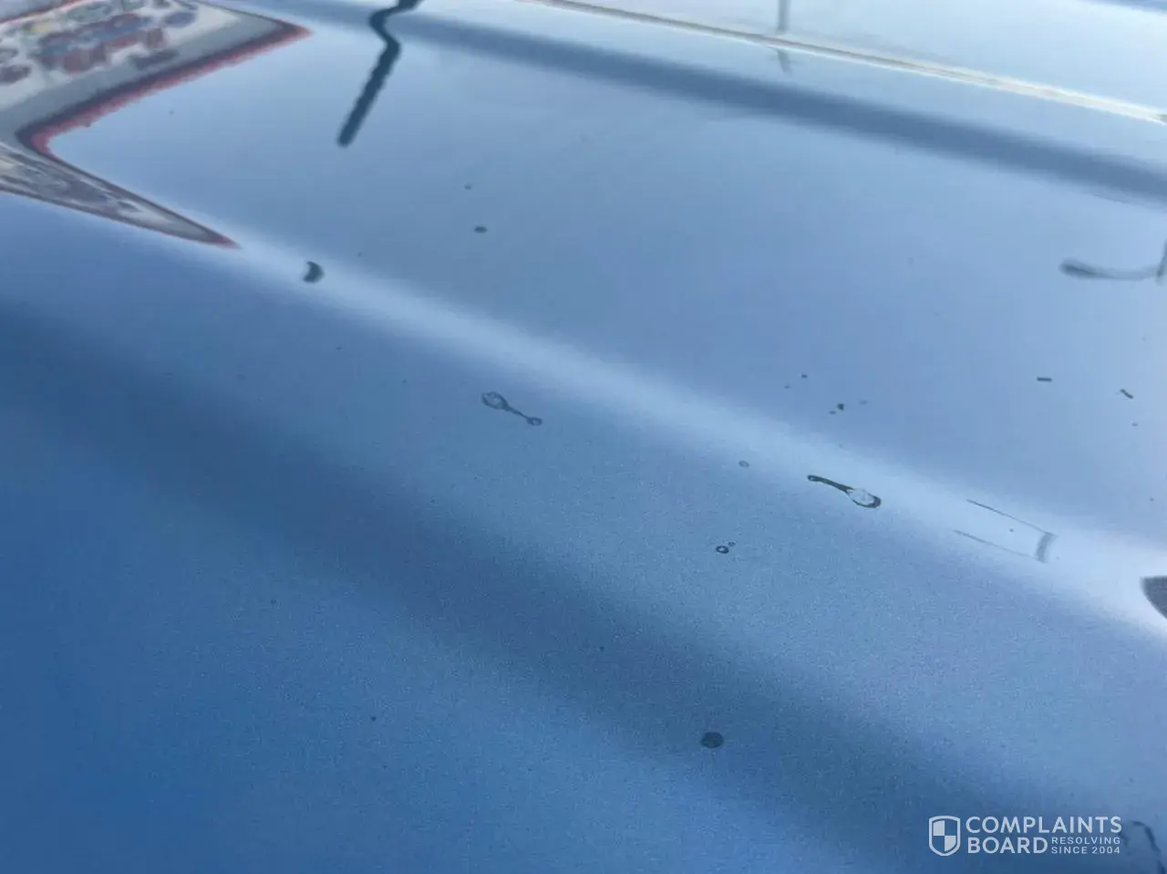 They said it was bird droppings, and after said that the car was exposed to chemicals, and said it was exposed to cement materials, and then I went to the main branch in Dammam and to inspect the car, the quality official, and in less than a minute and with the naked eye,