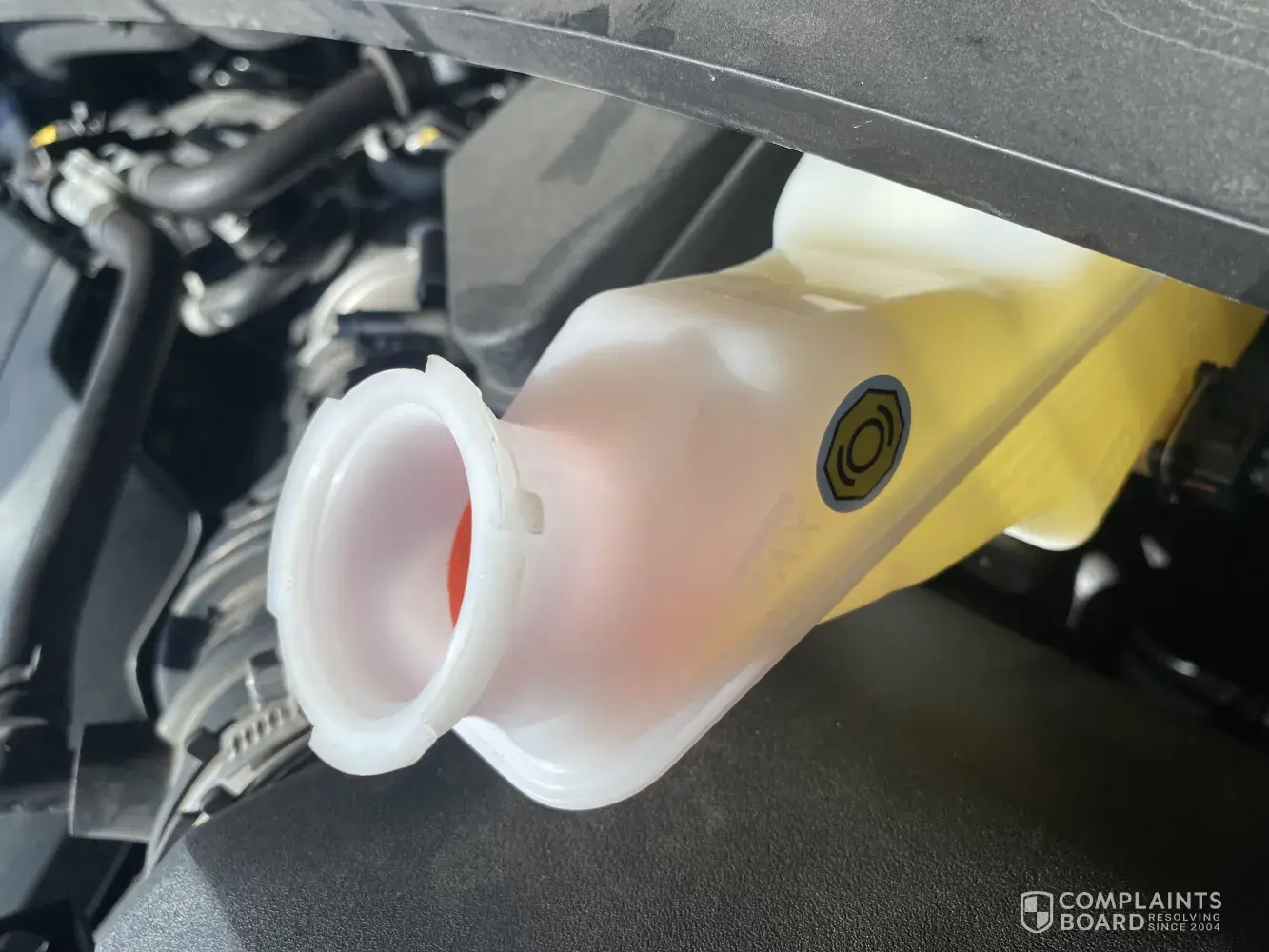 I purchased a 2021 SX Telluride on Labor Day 2020. In May 2021 I began to experience break failure. I would depress the brake pedal to the floor and pumped it a few times to completely stop. I took to a dealer nearby and it was diagnosed as a foreign liquid in the system that contaminated the entire system. I agreed to have it all replaced. It took over 3 weeks for the vehicle to be repaired at a cost of $7K. I spoke with the shop that had done an oil change on 27 Apr 21 and asked if they had put in fluid into the brake system. They showed and explained to their process in doing oil changes. Their work tables had no fluids on or nearby. Their fluids are stored away from any work table and all bottles sealed. The shop rep mentioned that there would be no need to add fluids because it's a new vehicle. The shop also sent me the testing do they did for all fluids and the brake fluid test was fine. I have the photo of that test. This is when the shop rep went online and was able to locate that an exact issue as mine has already been reported. Website was Kia Telluride.org. The dealer service rep showed and gave a sample of the brake fluid and a photo of it as well. The first sample was clear with an oily a droplets in it. The second one is a different color. More yellowish. This yellowish color is the same color of what is in my telluride right now. So I don't what the dealer rep was looking at. I want Kia Corporation to pay for these expense since the issue already exist in two vehicles. and experienced the same thing. You may reach me at my email. The photo closest to the top of brake reservoir is what the dealer rep sent me. The others I took today 3 Jul 21. You notice the cap is off, tats because the dealer mechanic didn't cap the reservoir. Thank you for your time.