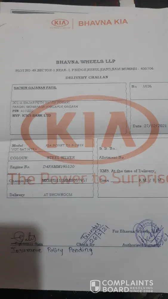 On 8th of march 2021 they called us in showroom to meet the owner Mr. Shah but he didn't showed up, instead their General Manager Mr. Vinay attended us . We along with my joint family attended him at that time he gave us a verbal commitment of full replacement of car after having telephonic conversation with the owner of bhavana wheels and kia India as he said . the voice recordings is available . He also stated that he will be providing the mail for the same on next day that is on 9th March . But on that day a anonymous call from Mr. Prashant Gharat came to my husband's phone threatening him and forcing him to take that car or else do what ever you want to do . Same day after his call, General Manager Mr. Vinay called and stated same thing to my husband . my husband told him to fix the meeting with the owner Mr Shah, for that he replied that to come on 10th at 4pm .