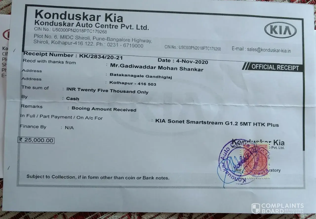 KIA Motors I am complainting about kia car booking service