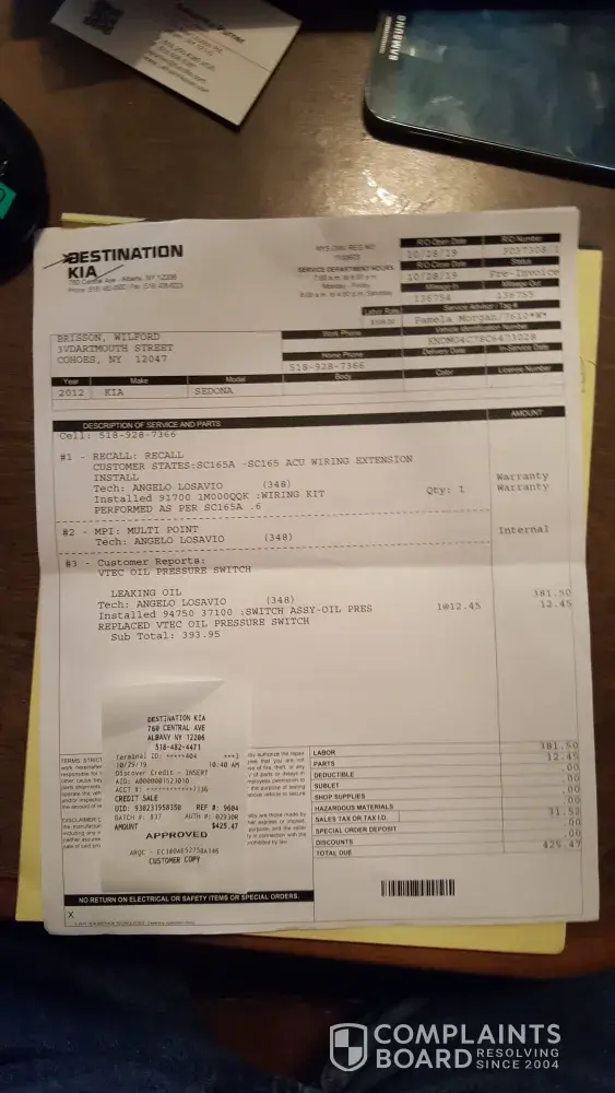 I purchased my 2013 Kia Soul new at this dealer. I had my car serviced here for about 1-2 years. I filed a complaint about the dealer mentioned above on 9/4/19 #[protected].The complaint involved poor customer service by the Service and Repair Dept. They requested I waste money on unneeded repairs. I was told by Operations Manager Cainen Wong, to take my car to another Kia dealer if I didn't like their recommendations. He was very stern and not very customer friendly.