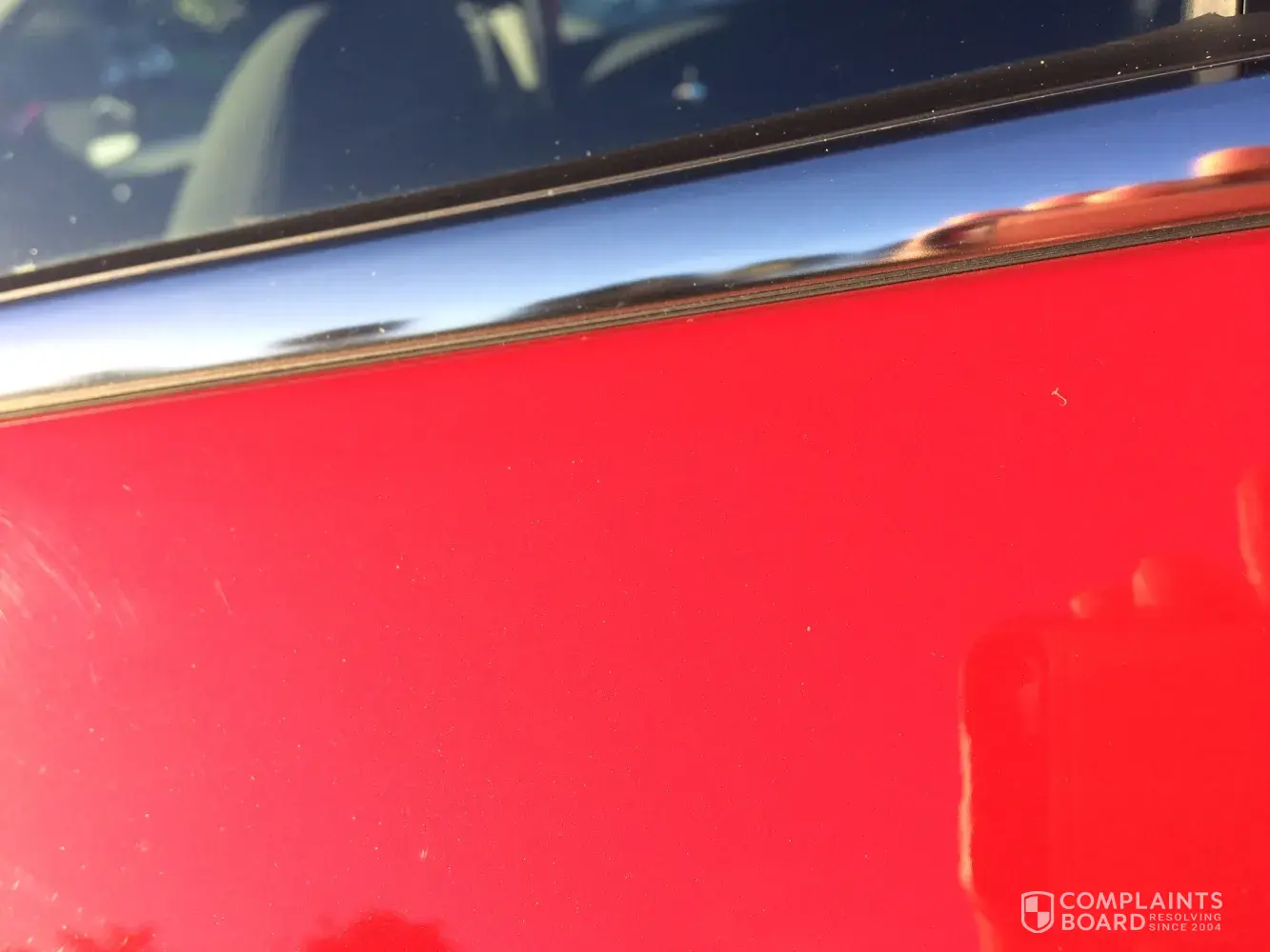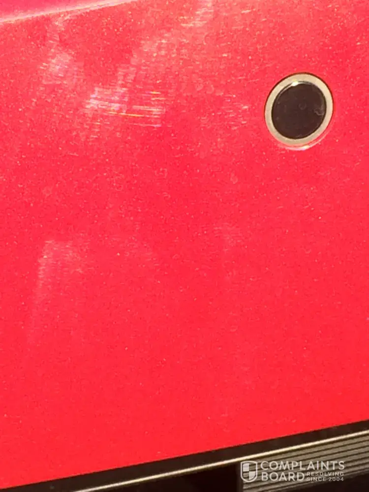 The paint finish on the new car is not acceptable as a new car. Their are minor scratches all over the body. Their are large sweeping buffing marks which are white/ silver in the sun. The bonnet has 3 jorge stain marks which a painter said was the clear coat fallen on too thick and then tried to polish out. The car was sent to a car painter by the dealer and now it is in far worse condition. I have paid for a completely new car and I have not got this. After owing it for a month it should no be going to and fro to the painters kias qa has slipped up badly. Which I am very surprised at.