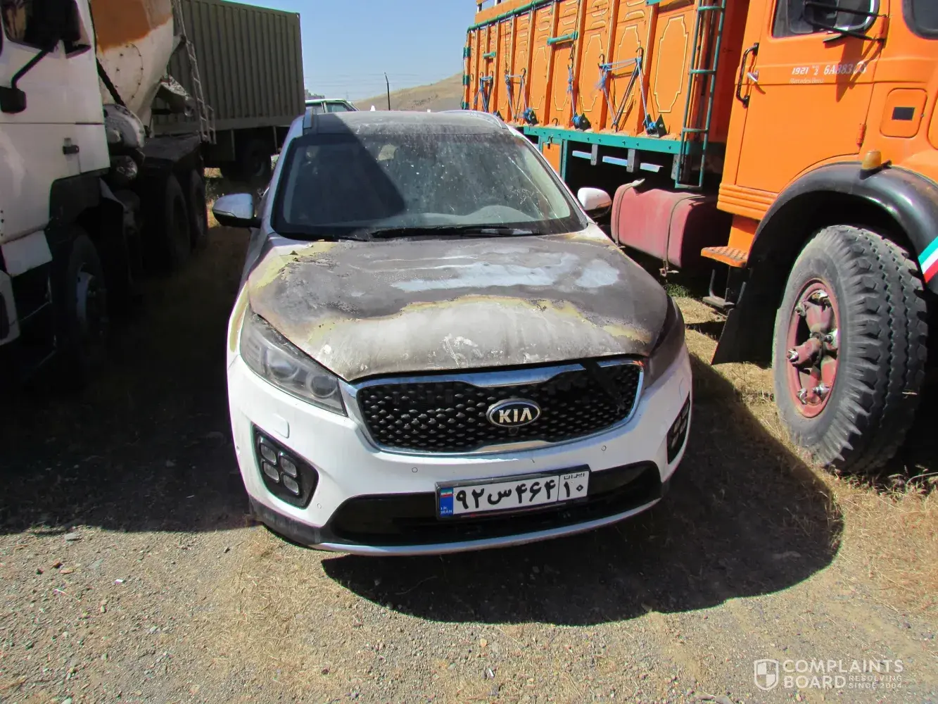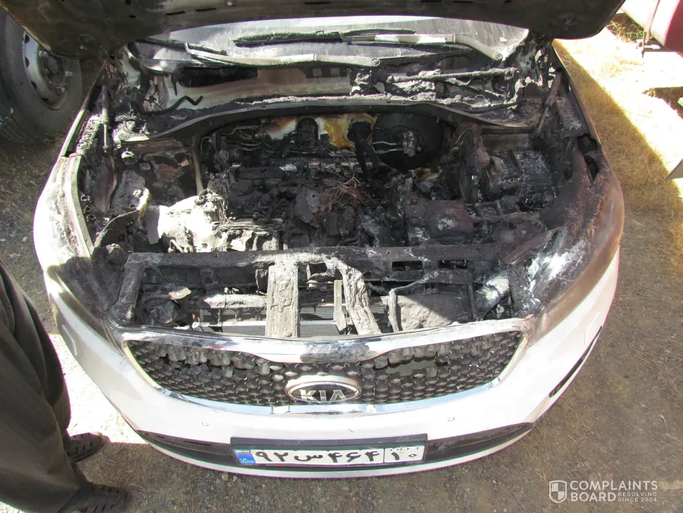 After 23 days and 560 miles of travel the engine suddenly caught fire while driving and the front part of the car burnt completely. It has guaranteed by AtlasKhodro, the official car dealer of Kia Motors. Unfortunately, AtlasKhodro has so far refused to replace the car despite the warrantee and it seems they do not intend to do so.