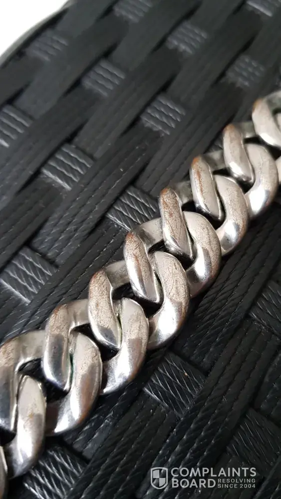 My husband bought a chain on the 4th of April. After wearing the chain twice, it has discolored completely. The chain has been worn 2 or 3 times, was not in contact with water nor perfume and has been kept in original boxing for special ocassions. We are very disapointed to see that it has discolored.