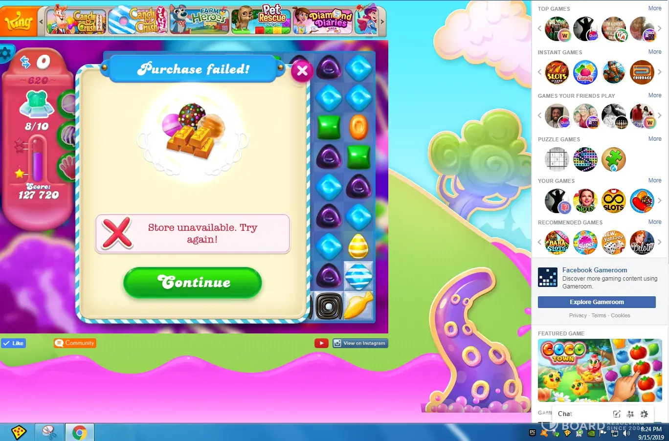 candy crush soda saga won't allow me to purchase booster 9/15/2019