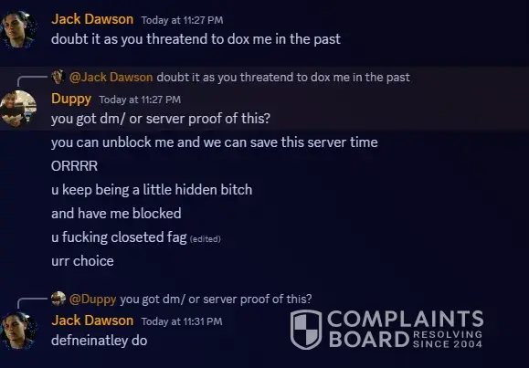 Hello, so Jayden has said many hateful things to me and is threating my personal saftey with sexual remarks such as "I will send someone to ra*e you". I have not engaged with this member other than dms on discord. Please note all of the evidence is in the images below.