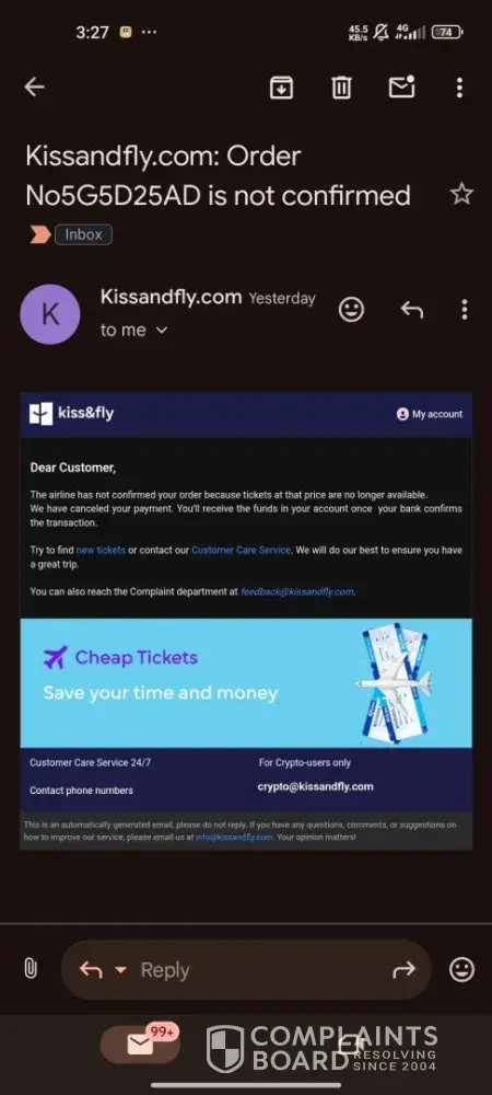 Such practices reflect very poorly on Kiss and Fly’s customer service and risk damaging your reputation with travelers who expect transparency and fairness. It is unfair to penalize customers for system errors with excessive surcharges that bear no relation to the cost of the original ticket.