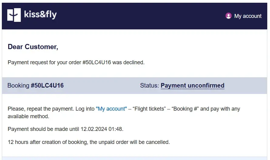 Preferred solution: A flight credit with the airline booked with KissandFly.