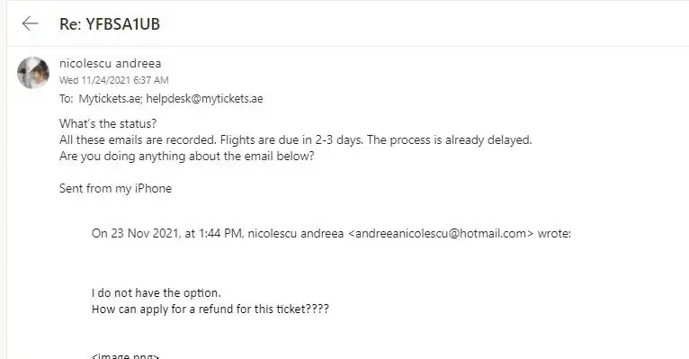 Desired outcome: I want to receive the refund of my tickets since the first day I have applied for it not now, now its too late.