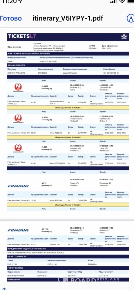 My daughter bought this ticket as a gift for me to visit my sick mother in Lithuania.